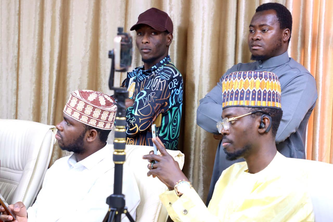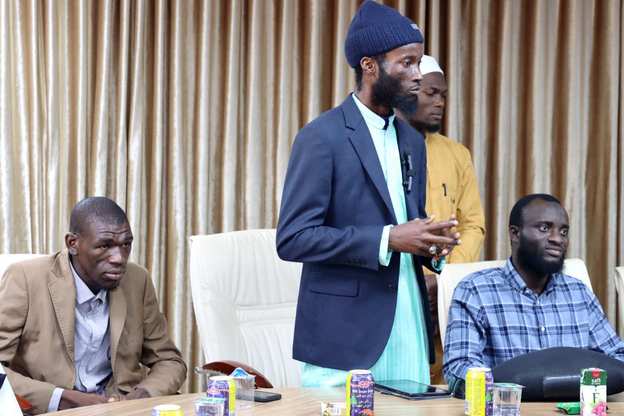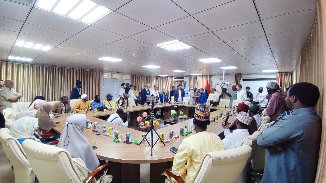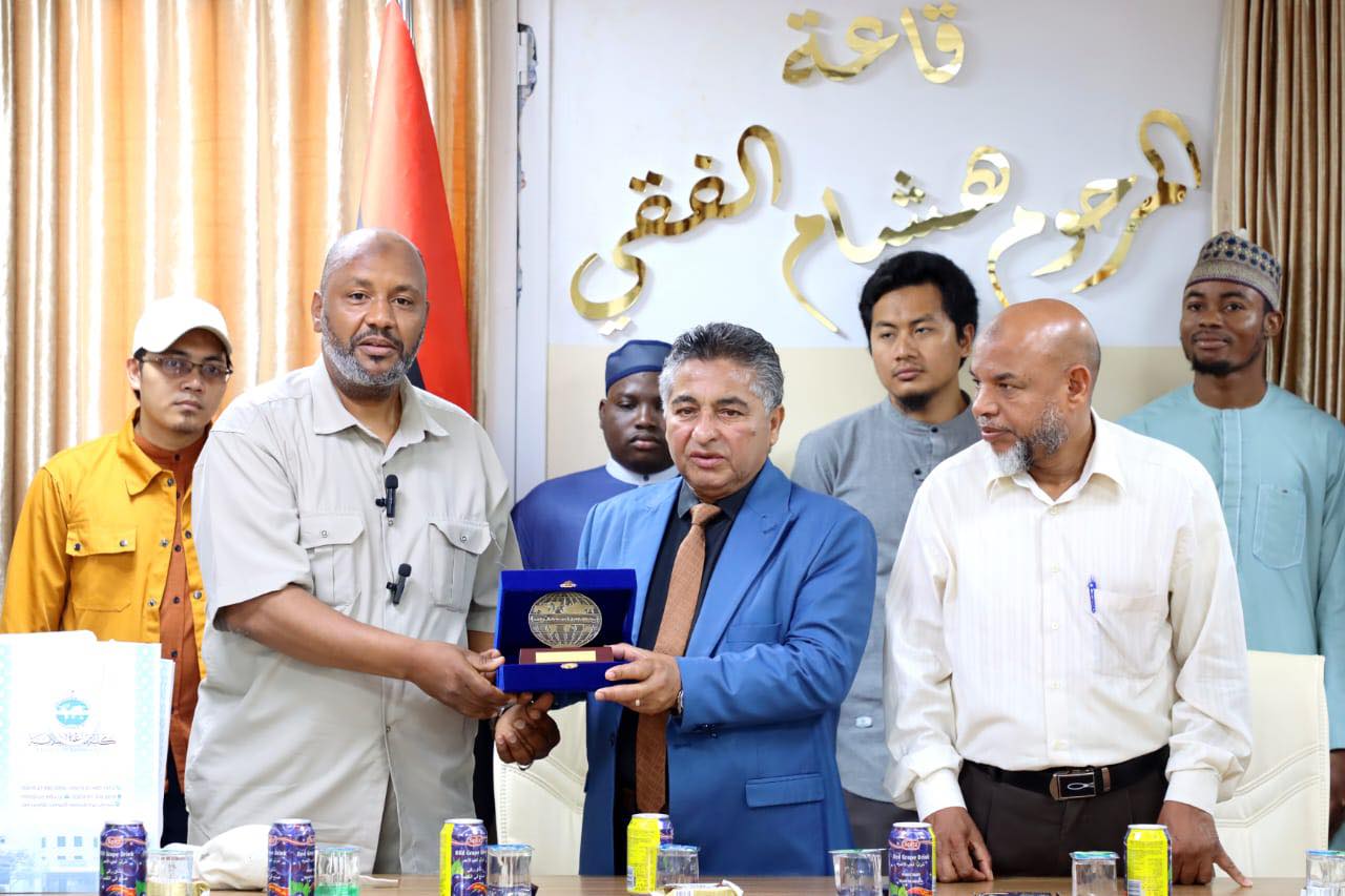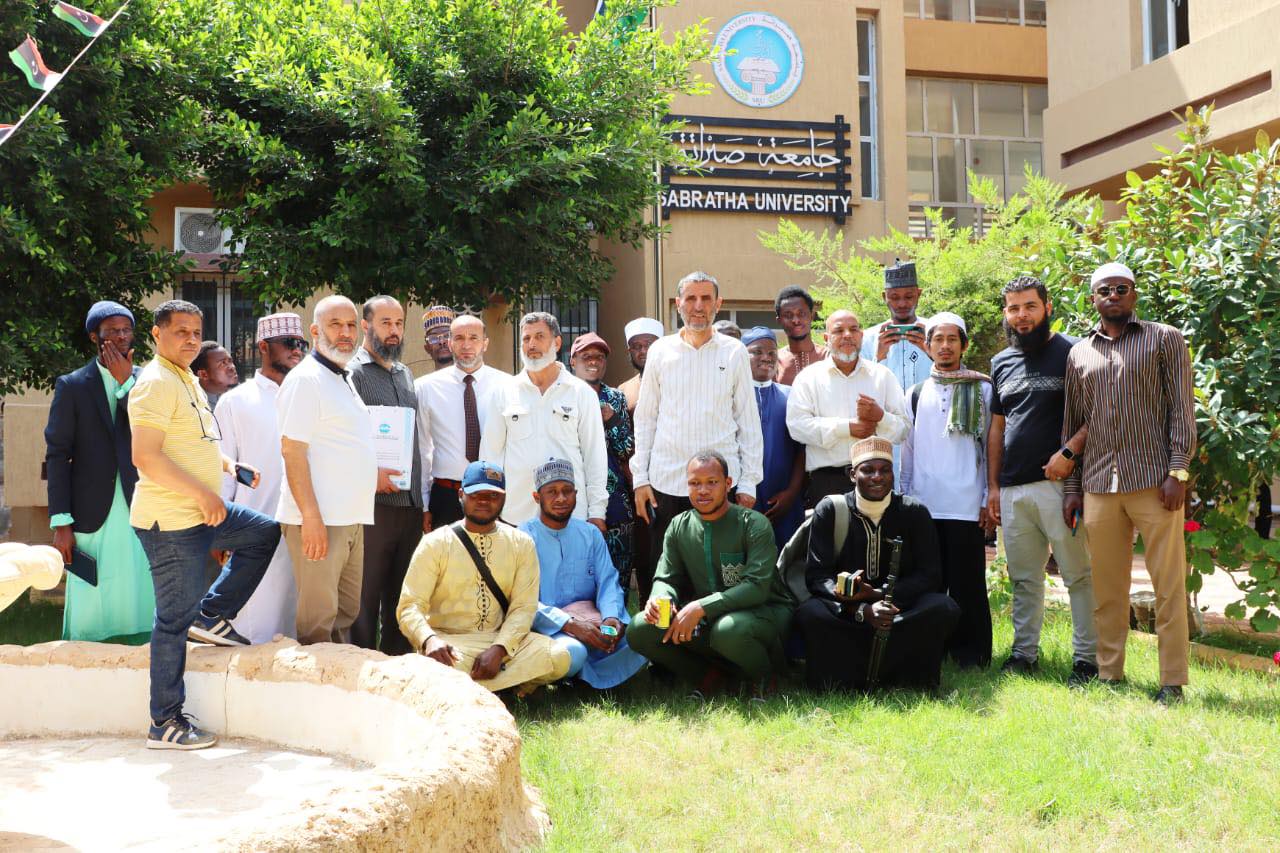 They were warmly received by Dr. Salem Al-Hrishi, Dr. Ahmed Aoun, Dr. Al-Hadi Bouljam, Dr. Walid Shwaya, and Dr. Ahmed Al-Muntasir, who welcomed the guests with great hospitality. A shield was presented by the College of Islamic Call along with several issues of its magazine.